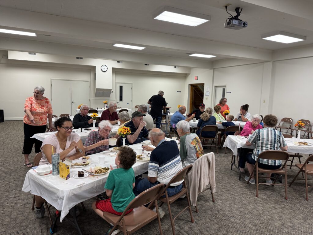 On March 21, we will host our first community dinner for 2026. The dinner will start at 4:30 PM and end at 6 PM (or until sold out). We will serve meatloaf, baked potatoes, green beans, applesauce, and a dessert. You can dine in or have a meal to go. Cost is thirteen dollars. Five dollars for children under twelve. An elevator is vailable at our accessible entrance. Contact us for more information.
